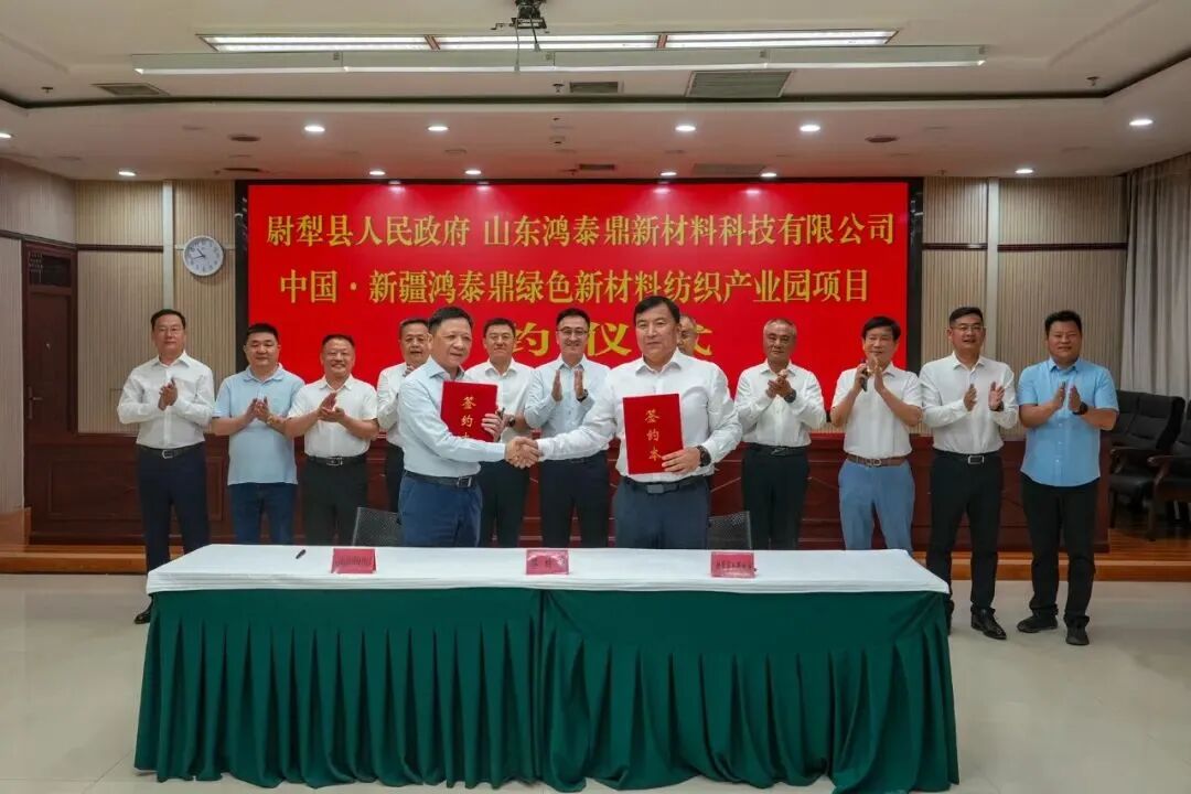 6月16日,新疆鸿泰鼎绿色新材料纺织产业园项目正式签约,落地新疆巴州尉犁县,并于当日开工建设。