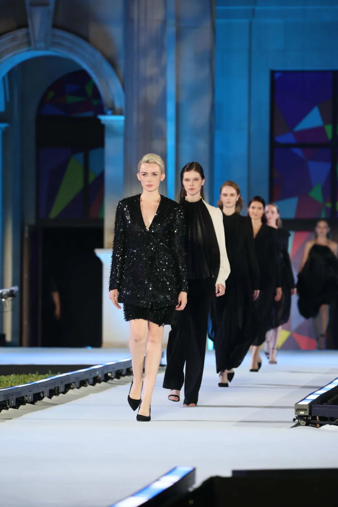 国际风情交融,尽显开放胸襟。开幕式洋溢着浓厚的国际风情,充分展现了大连作为开放之城的包容气度。一是国际模特云集。模特走秀环节汇聚了来自8个国家的40余名职业模特,约100套精美服装在欧式背景前流动,中外模特联袂演绎,编织出一幅动感十足的国际化时尚画卷。二是现代舞舞动全球。舞蹈环节由国际演艺团体VIVA WORLD担纲,来自俄罗斯、哈萨克斯坦等四个国家的舞者带来充满力量与美感的现代舞表演,为开幕式增添了多元文化碰撞的艺术魅力。